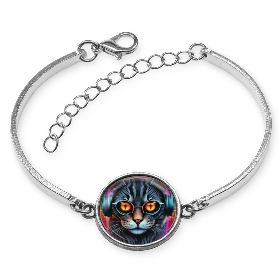 BSI-0164 Браслет металлический Кот в очках и наушниках неон