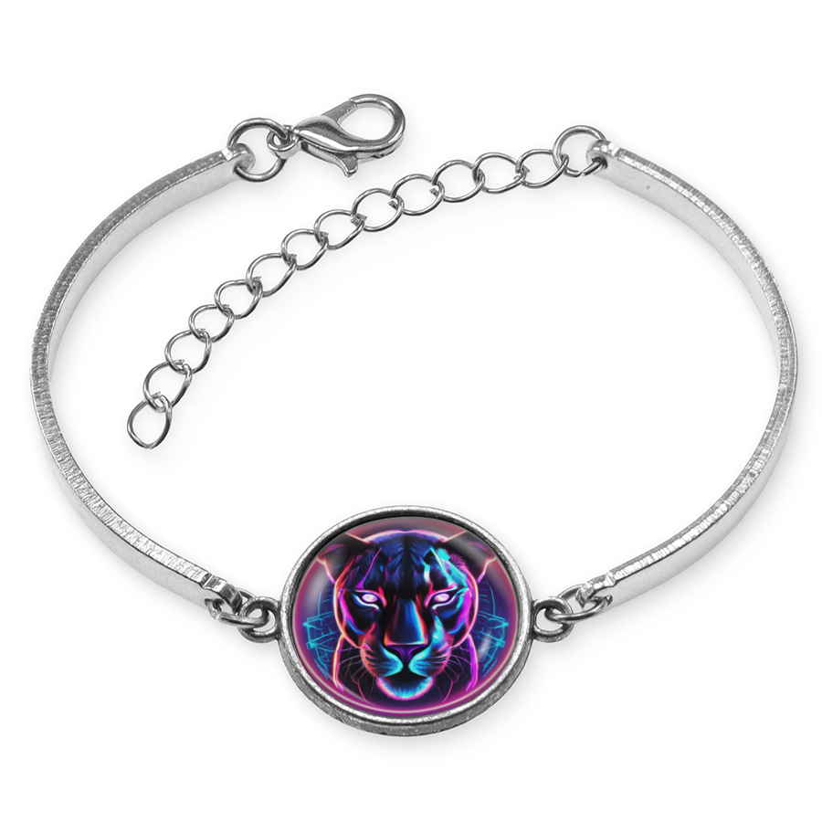 Браслет из бижутерного сплава с регулируемой по длине застёжкой. Изображение диаметром 20 мм прикрыто выпуклой стеклянной линзой. Товар упакован в прозрачный пакет. Без описания.