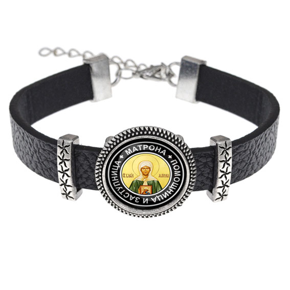 BSK2-0092 Кожаный браслет Святая блаженная Матрона Московская