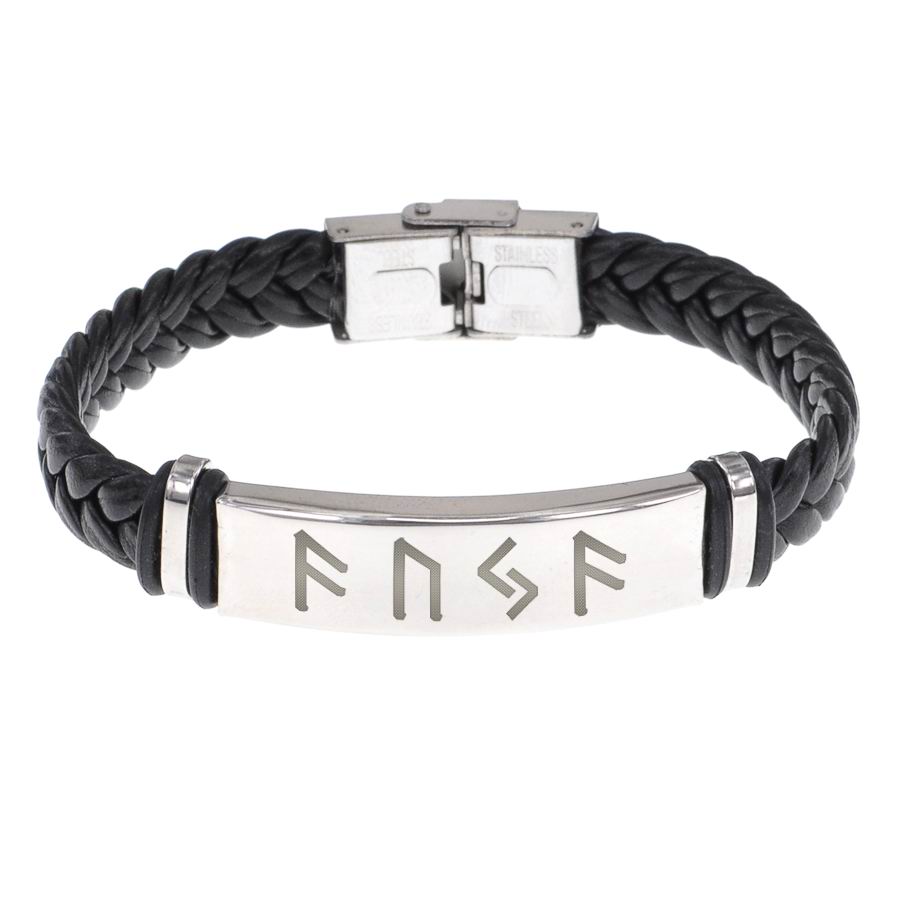 Плетёный кожаный браслет с рунической формулой.