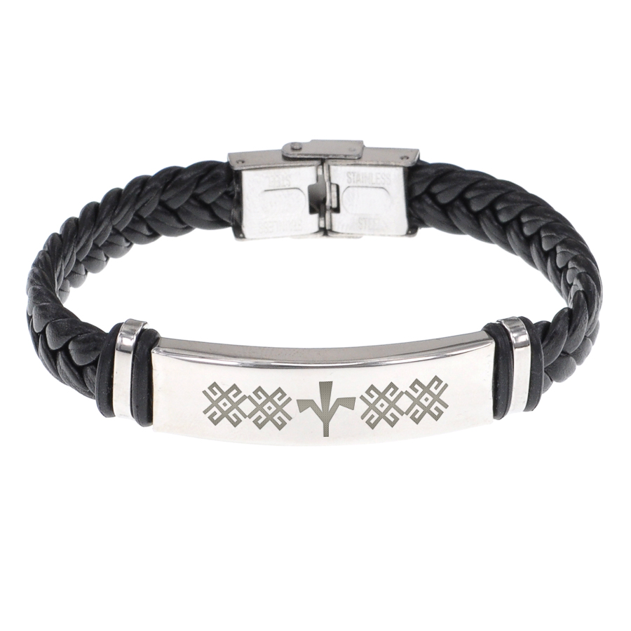 Плетёный кожаный браслет со славянским символом.