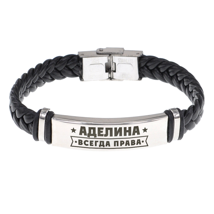 Плетёный кожаный браслет с именной гравировкой Всегда Права. Внутренний диаметр 6 см, длина 20,5 см, ширина 1 см. Материал: кожа, нержавеющая сталь.