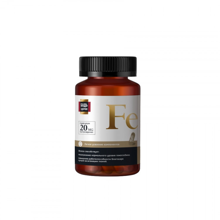 Блэк Железо от "Будь Здоров!" содержит органическое высокобиодоступное железо в хелатной форме (бис-глицинат).