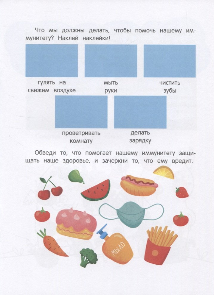 Выполняй весёлые задания из рабочей тетради, раскрашивай картинки, клей наклейки, проходи лабиринты, запоминай полезные правила и, главное, будь здоров! Желаем здоровья тебе и всей твоей семье!