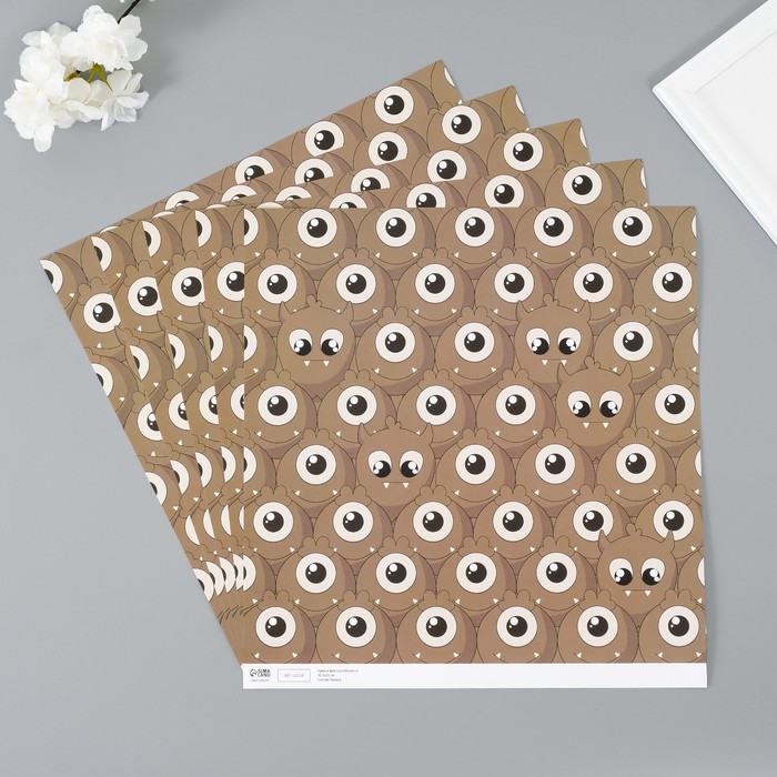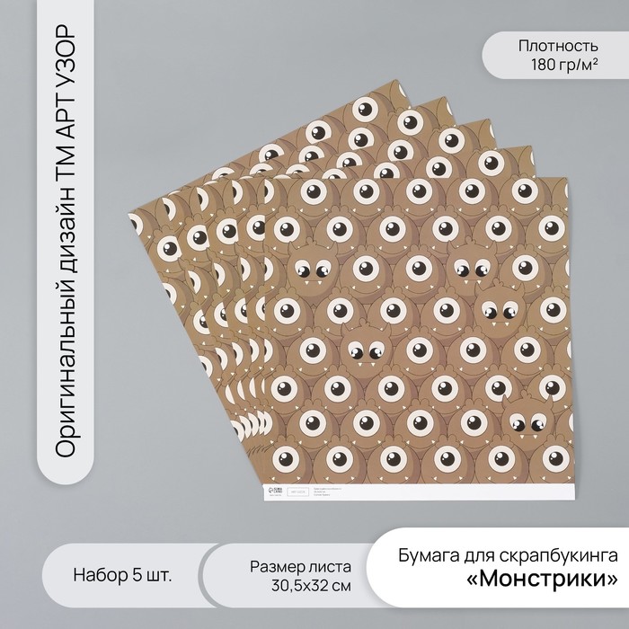 Бумага для скрапбукинга «Монстрики», плотность 180 г, набор 5 шт., 30.5×32 см