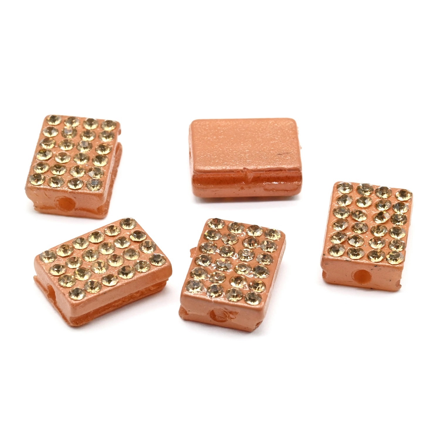 Бусина полимерная со стразами прямоугольник 13*10мм, цв.карамель (упаковка 5 штук)