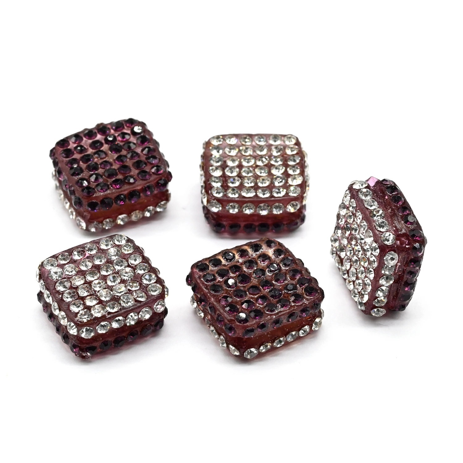 Бусина полимерная со стразами ромб 18*18мм, цв.хрусталь, гранатовый (упаковка 5 штук)