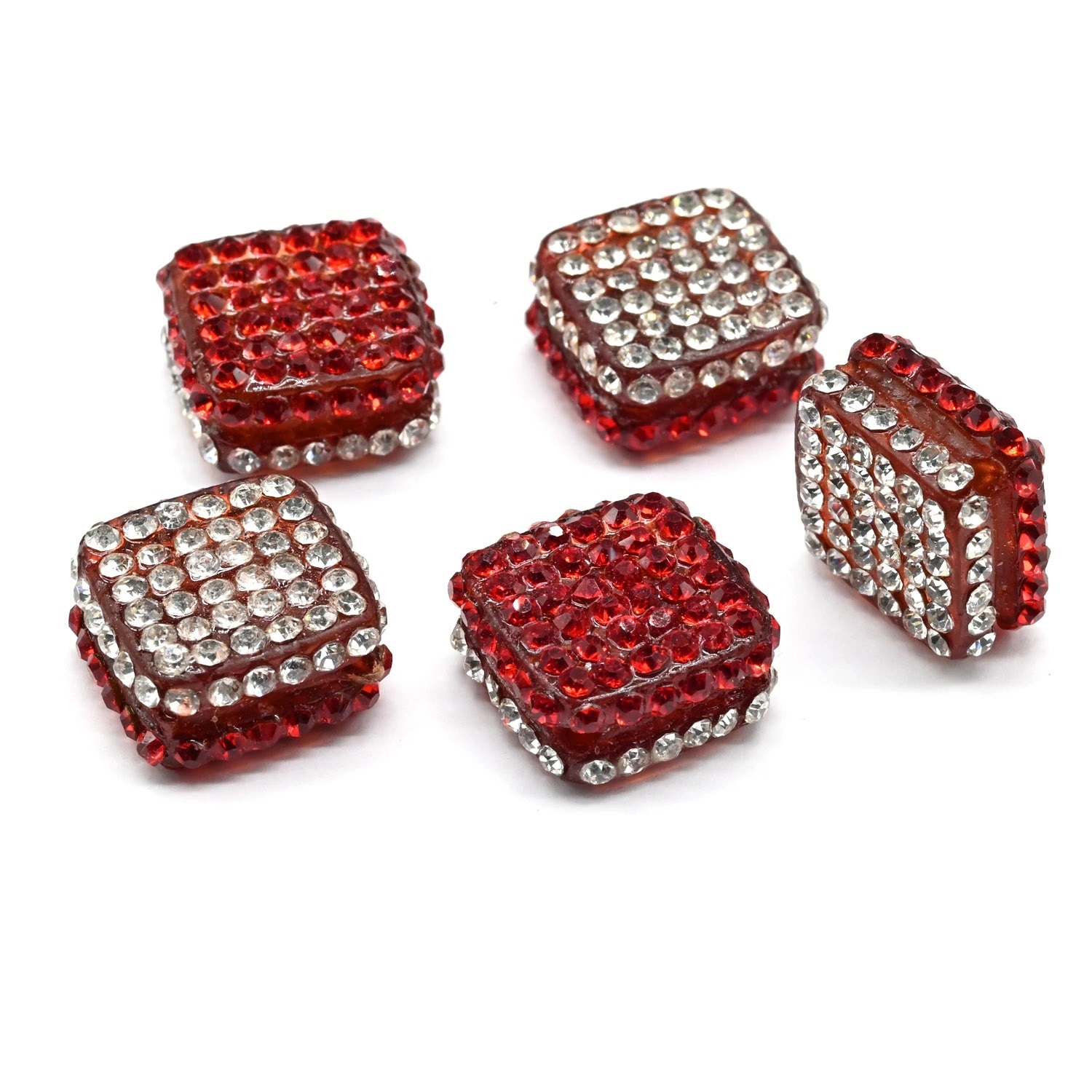 Бусина полимерная со стразами ромб 18*18мм, цв.хрусталь, красный (упаковка 5 штук)