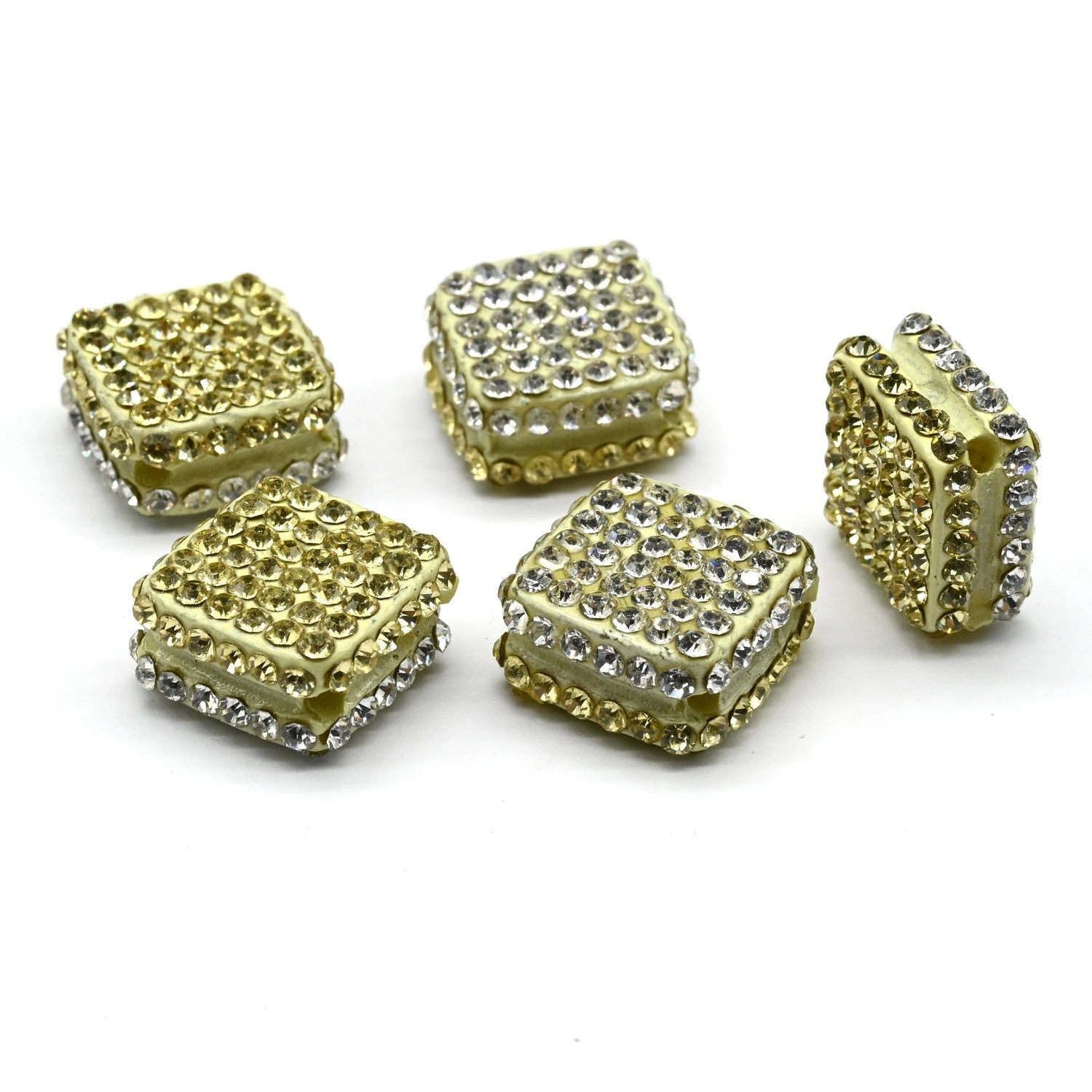 Бусина полимерная со стразами ромб 18*18мм, цв.хрусталь, желтый (упаковка 5 штук)