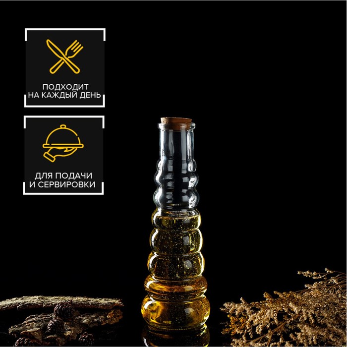 Производитель: Доляна; Габариты: 7,5 x 7,5 x 22; Страна: Китай; В боксе: 60 шт; Состав: Стекло, пробка; Материалы: стекло, пробка; Фасовка: по 1 шт; Индивидуальная упаковка: Без упаковки; Габариты товара: 7,6 см × 7,6 см × 21,8 см; Сертификат: СТР; Набор: Нет; Цвет: Прозрачный; Объём, мл: 400; Вид упаковки: Без упаковки; Рисунок: Нет; Материал крышки: Пробка; Материал: Стекло; Герметичная крышка: Нет; Для детей до 3 лет: Нет; Вид крышки: Пробка; Можно мыть в посудомоечной машине: Да; Назначение: Для масла