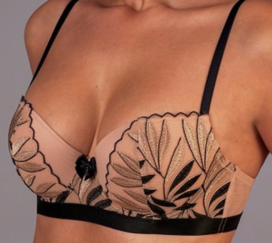 Оптовая продажа. Бюстгальтер женский с формованными чашками из роскошной двухцветной вышивки флористического дизайна плотного застила и мягкой эластичной сетки деликатного телесного оттенка.