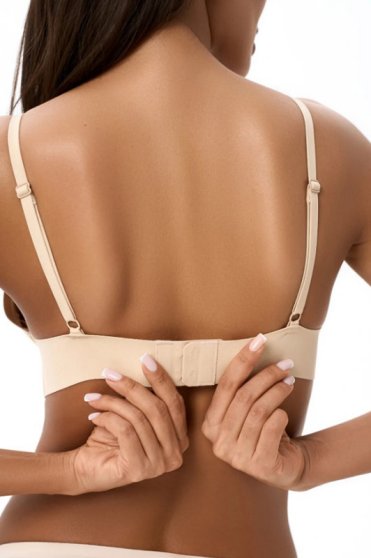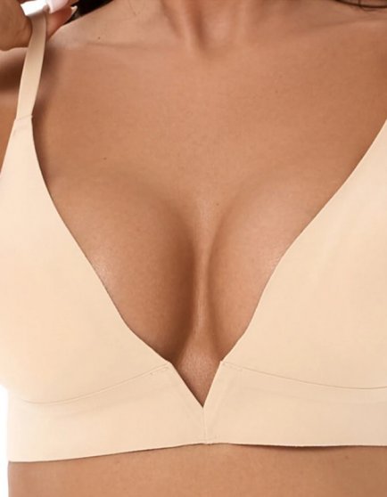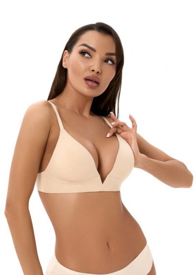 Оптовая продажа. Бесшовный бюстгальтер с треугольными чашками и дополнительным глубоким вырезом. Бюстгальтер не имеет косточек, что обеспечивает легкость и свободу движений, а гладкий материал приятно облегает грудь, не вызывая дискомфорта. Гибкие чашки идеально поддерживают грудь, создавая красивый силуэт, который подчеркнет достоинства. Удобные лямки легко регулируются, что позволяет настроить бюстгальтер под любой размер и предпочтения.