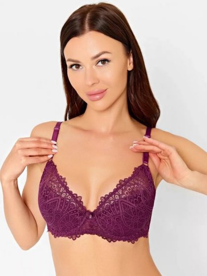 Оптовая продажа. Бюстгальтер женский с поролоновой чашкой дублированной хлопком. Фактурное кружево, декорирующее чашки изделия, плавно переходит в удобные широкие бретели.