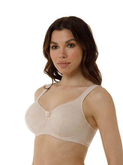 Оптовая продажа. Бюстгальтер женский из хлопка с мягкими чашками, без каркасов. Чашки Т-образного членения высоко приподымают грудь и создают округлую наполненную форму. Усиленная бретель снимает нагрузку с плечевого пояса. Широкий стан плотно облегает тело и обеспечивает стабильную комфортную посадку бюстгальтера на фигуре.