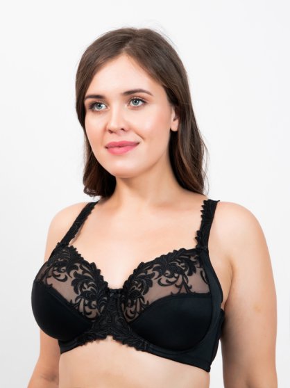 Оптовая продажа. Бюстгальтер с мягкими чашками, выполненный из гладкого полотна и тонкой сеточки с изысканной вышивкой, бретели широкие регулируемые. Обеспечивает превосходную поддержку и деликатную коррекцию груди. Размер чашки у данной модели D (указан в конце артикула).