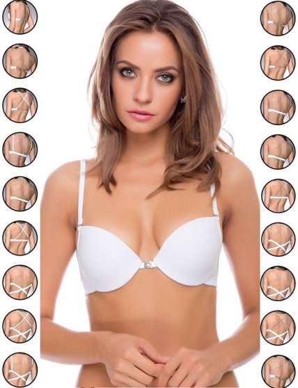Оптовая продажа. Бюстгальтер трансформер, с формованной чашкой "пуш-ап", застёжка спереди, полностью гладкий, съёмные бретели, в комплекте с силиконовыми и широкой.