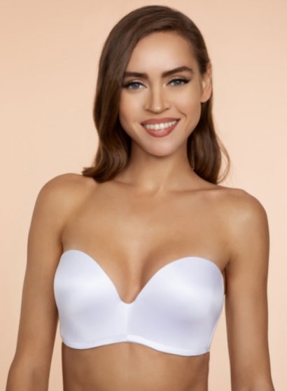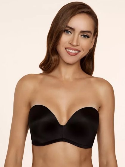 Оптовая продажа. Бюстгальтер- балконет женский из мягкой микрофибры, с формованными чашками и Push-Up эффектом, гладкий, атласный. Благодаря силиконовой ленте по низу бюста и дополнительным силиконовым лентам на боковой поверхности изделия ,упругим вертикальным пластинам, вшитым в боковые детали, бюстгальтер без бретелей хорошо поддерживает грудь ,придает ей соблазнительную форму.