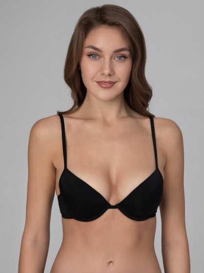 Оптовая продажа. Бюстгальтер с гладкой формованной чашкой, "пуш-ап" с гелем, выполнен из микрофибры, бретели съемные, тонкие, регулируемые. Размер чашки у этой модели B (обозначен буквой в конце артикула).