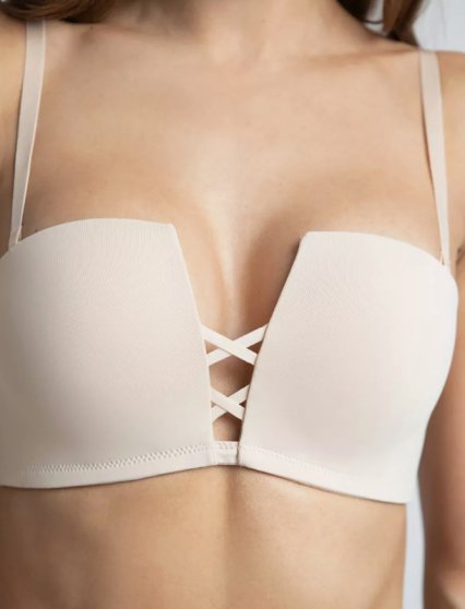 Оптовая продажа. Бюстгальтер балконет женский с формованными чашками, Push-Up эффектом, без косточек, гладкий. Силиконовые вставки на поясе фиксируют положение бюстгальтера на груди. Бретели регулируются по длине, съемные.