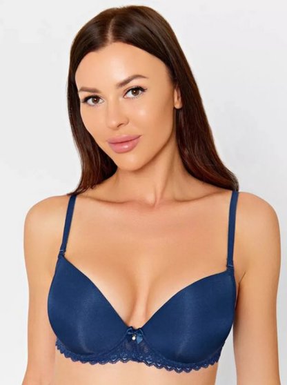 Оптовая продажа. Бюстгальтер женский с гладкими формованными чашками, Push-Up эффектом, с легким мерцанием, декорирован кружевом. Бретели регулируются по длине, съемные.