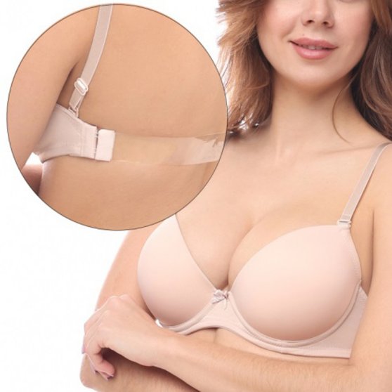 Оптовая продажа. Бюстгальтер женский с формованными чашками и Push-Up эффектом, гладкий. Бретели регулируются по длине, съемные. Прозрачная силиконовая спинка. Двухрядная застежка сбоку.