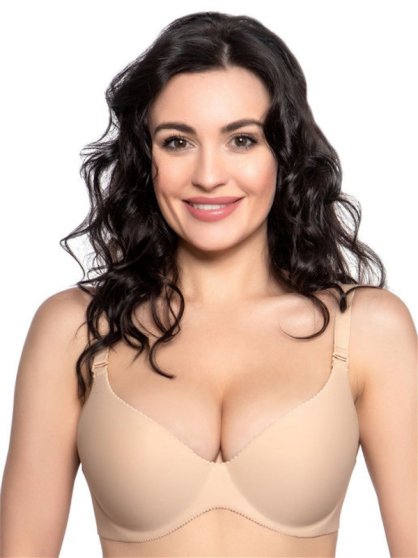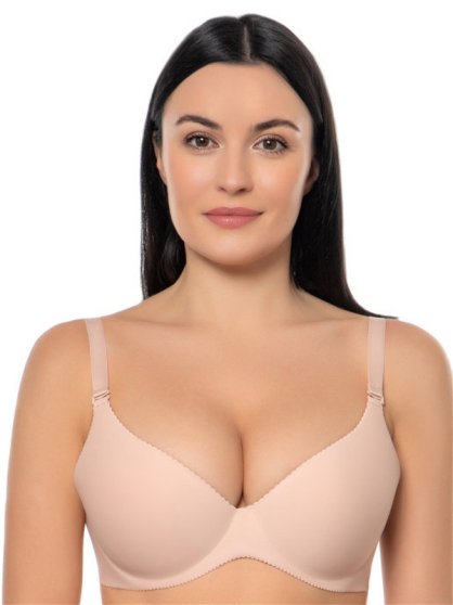 Оптовая продажа. Гладкий бесшовный бюстгальтер балконет с эффектом "пуш-ап" с лазерной обработкой срезов. На каркасах. Чашка формованная, с нижним градуированным слоем наполнителя для легкого эффекта пуш-ап. Линия соединения деталей стана занижена. Пояс выполнен из гладкого эластичного полотна с микрофиброй. Бретели съемные, регулируемые по длине.