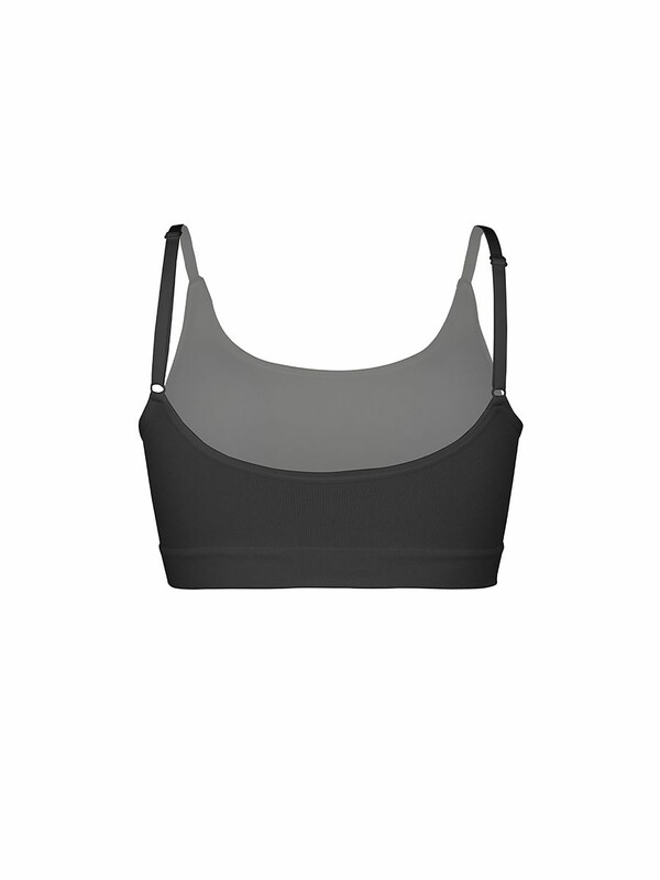 Бюстгальтер-топ из эластичного рибового полотна в вертикальный рубчик с мягким подкладом и съемными вкладышами. Без каркасов и боковых корсетных вставок. Регулируемые не съемные тонкие бретели.. Брендированная лента под грудью.