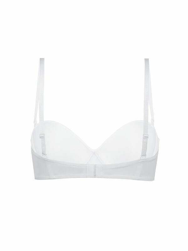 Гладкий базовый бюстгальтер Bandeau bra с формованными чашками на каркасах, без push-up во всех размерх и с боковыми корсетными вставками. Силиконовая лента по верхнему срез бочка. Застежка на 2 крючка и 3 ряда петель.Эластичные бретели можно откорректировать по длине. Бретели съемные. Ширина бретелей на объемы 70, 75 и 80 см с чашками А,В,С - 10мм, на объемы 75, 80 и 85 с чашкой D и размер 85С - 15 мм. Изделие украшают брендированные бретели и металлическая капелька с первой буквой натменования бренда