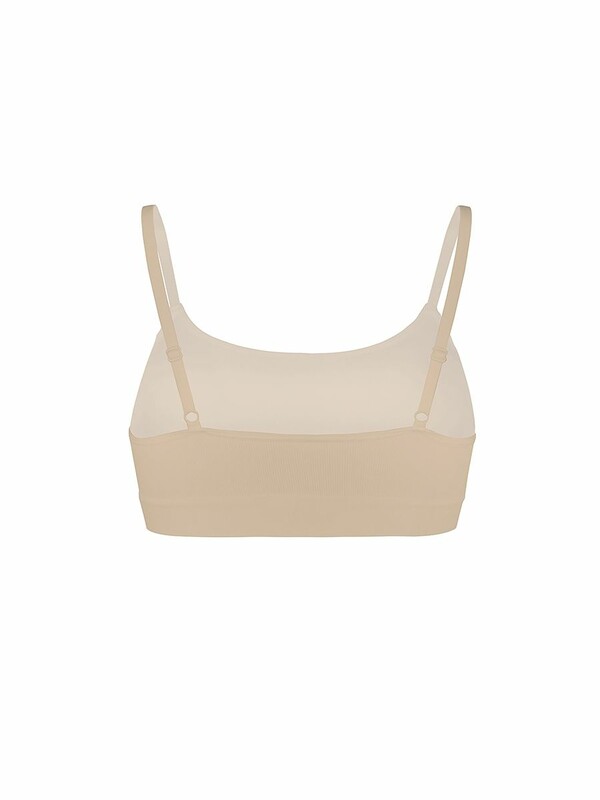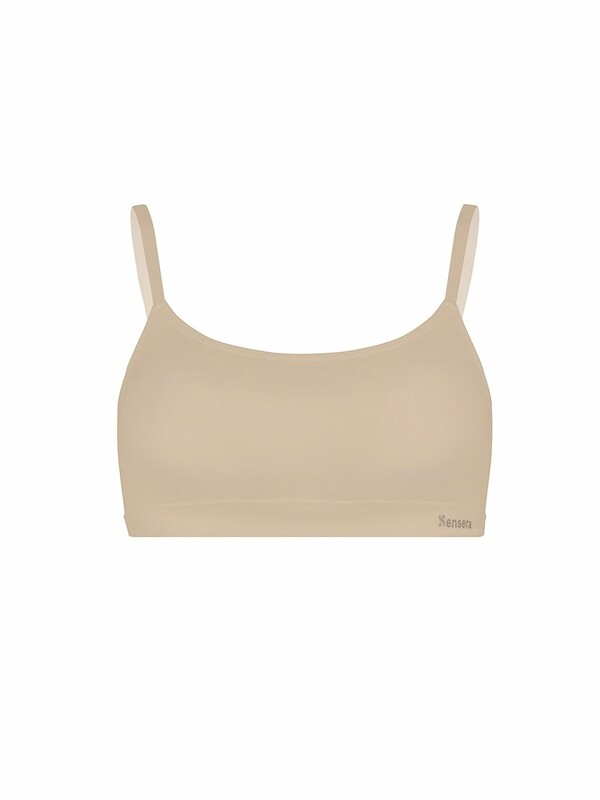 Производитель: Sensera Бюстгальтер-топ из эластичного рибового полотна в вертикальный рубчик с мягким подкладом и  съемными вкладышами.  Без каркасов и боковых корсетных вставок. Регулируемые не съемные тонкие бретели.. Брендированная лента под грудью.