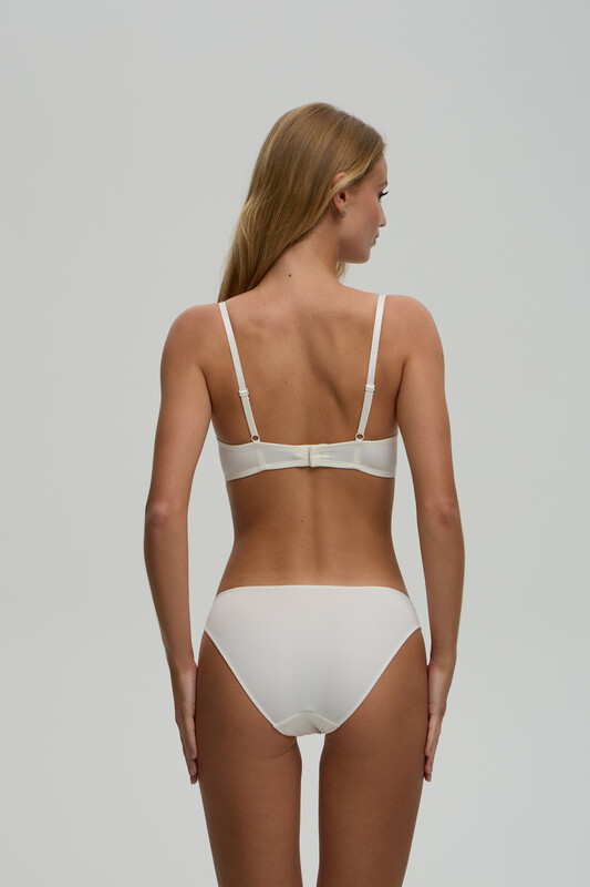 Бюстгальтер с формованными чашками balconette с push-up во всех размерах, на каркасах и с боковыми корсетными вставками , выполнен из сетки с вышивкой "цветочки" и тонкого полотна. Бретели регулируемые, не съемные. Нежная роза украшает серединку переда. Застежка на 2 крючка и 3 ряда петель.