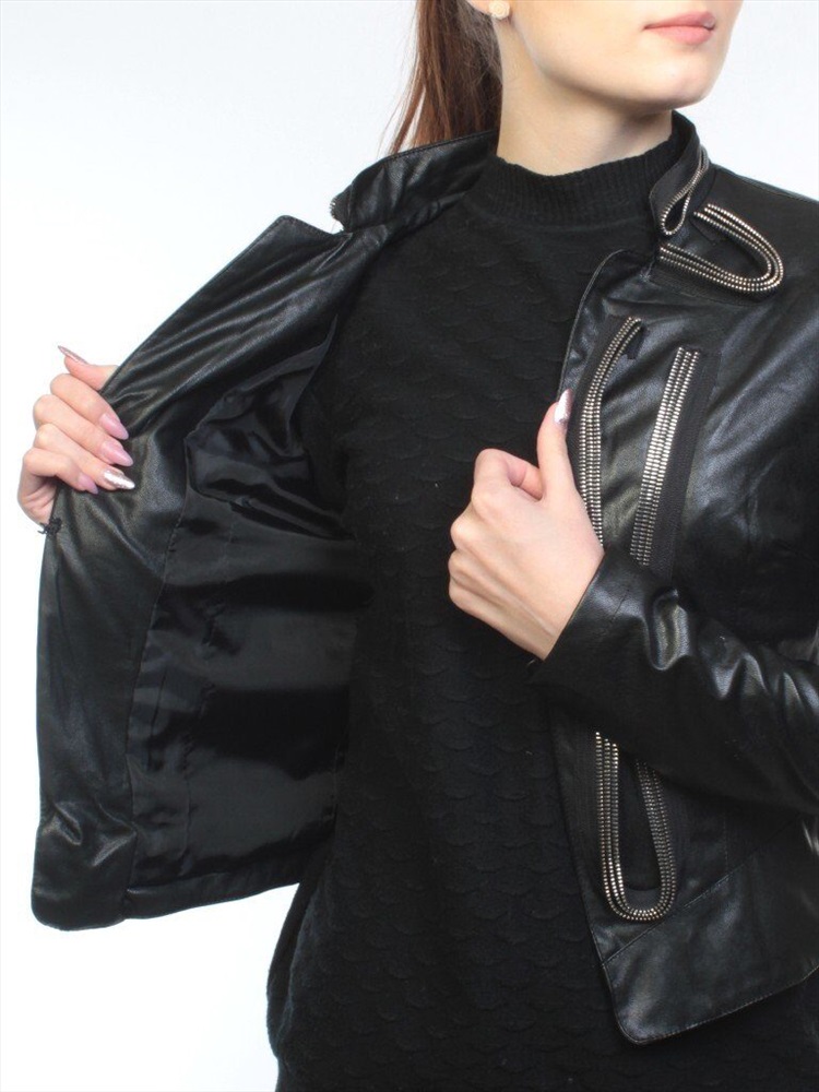 Кол-во в упаковке: 1 Куртка женская демисезонная (искусственная кожа) Модель сезона: весна-осень. Артикул: C085 Дополнительная информация: Центральная застежка крючок-петля. Фото сделано на модели размера 44 Рост модели 167 см., объем груди 90, талия 70, бедра 95. Витринный образец размера L (46 российский) Длина спины: 48 см. Ширина спины: 48 см. Длина рукава: 64 см. Длина плеча: 11 см. Материал верха: искусственная кожа. Состав ткани: 55% полимер, 45% полиэстер. Подкладка: 100% полиэстер. Размеры указанные на изделии и соответствие российским стандартам: S (42 российский) M (44 российский) L (46 российский) XL (48 российский) Комментарии к товару