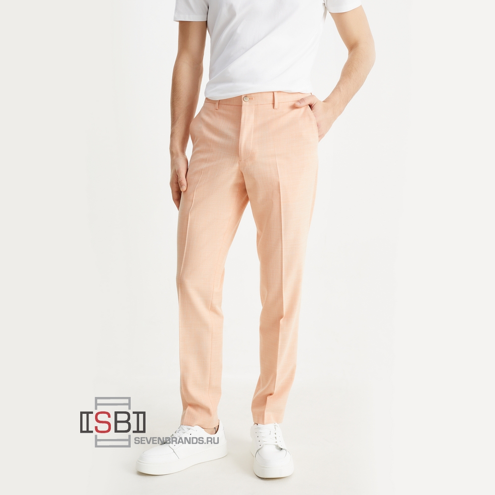 Брюки классического кроя из мягкой ткани с застежкой на молнию и пуговицу, боковыми карманами и прорезными задними карманами на пуговице. Штаны со стрелками. Облегающий крой, повторяющий контуры тела, создаёт приталенный силуэт.