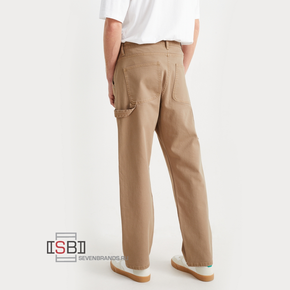 Брюки-карго из прочной, слегка эластичной ткани. По два посадочных и задних кармана на каждом. Накладной карман рядом с боковым швом и тканевая защелка, закрепленная сбоку.