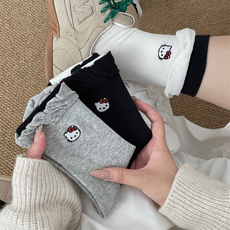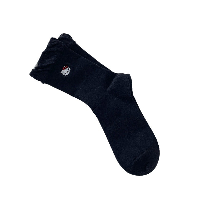 Cartoon cotton Japanese cute knee socks, mid-length, with embroidery