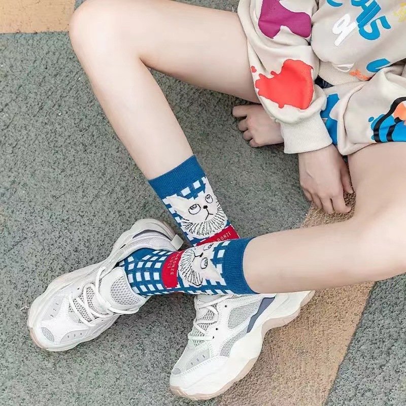 Cartoon retro fuchsia high boots, cute socks, Lolita style