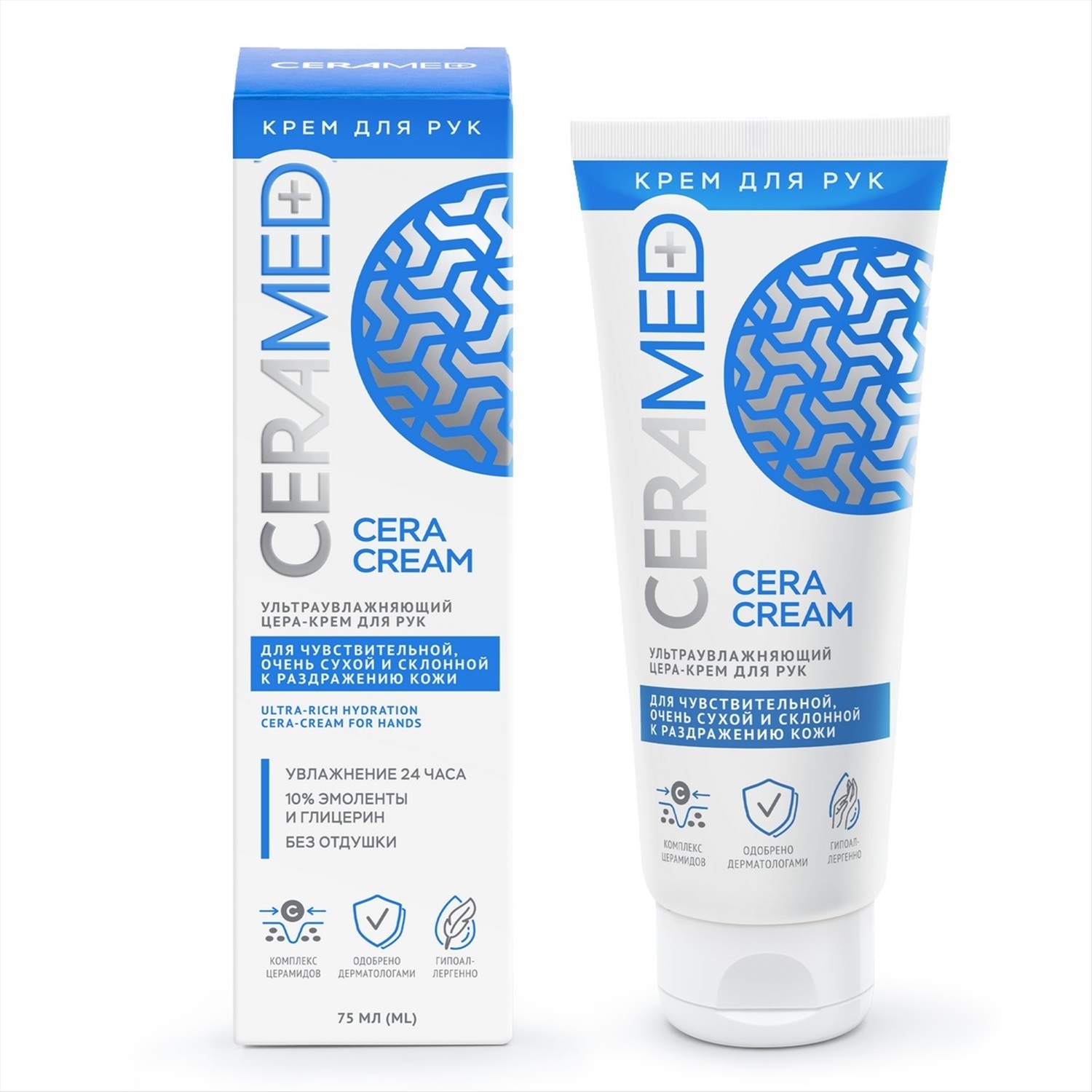 Цера-крем для рук ультраувлажняющий, 75 мл. Кожа рук чаще всего подвержена агрессивным воздействиям со стороны окружающей среды. Качество воды, перепады температуры и солнечные лучи истощают липидный слой кожи и запасы влаги в ней. Кожа теряет свою эластичность. Биосинергия компонентов позволяет Цера-Крему глубокого увлажнять и интенсивно питать кожу рук, оставляя ее мягкой и увлажненной в течение длительного времени. Идеально подходит для чувствительной, очень сухой и склонной к раздражению кожи. Базовый принцип создания продуктов Ceramed заключается в Биосинергии компонентов с доказанной эффективностью, направленных на решение конкретных задач. Церамиды — ключевые структурные элементы рогового слоя, оказывающие влияние на проницаемость кожи в обоих направлениях. Несут в себе функцию межклеточного липидного цемента. При повреждении кожи — заполняют межклеточное пространство, уменьшают трансэпидермальную потерю влаги. Эмоленты — создают защитный барьер на поверхности кожи, удерживая в ней влагу и защищая кожу от внешнего воздействия.