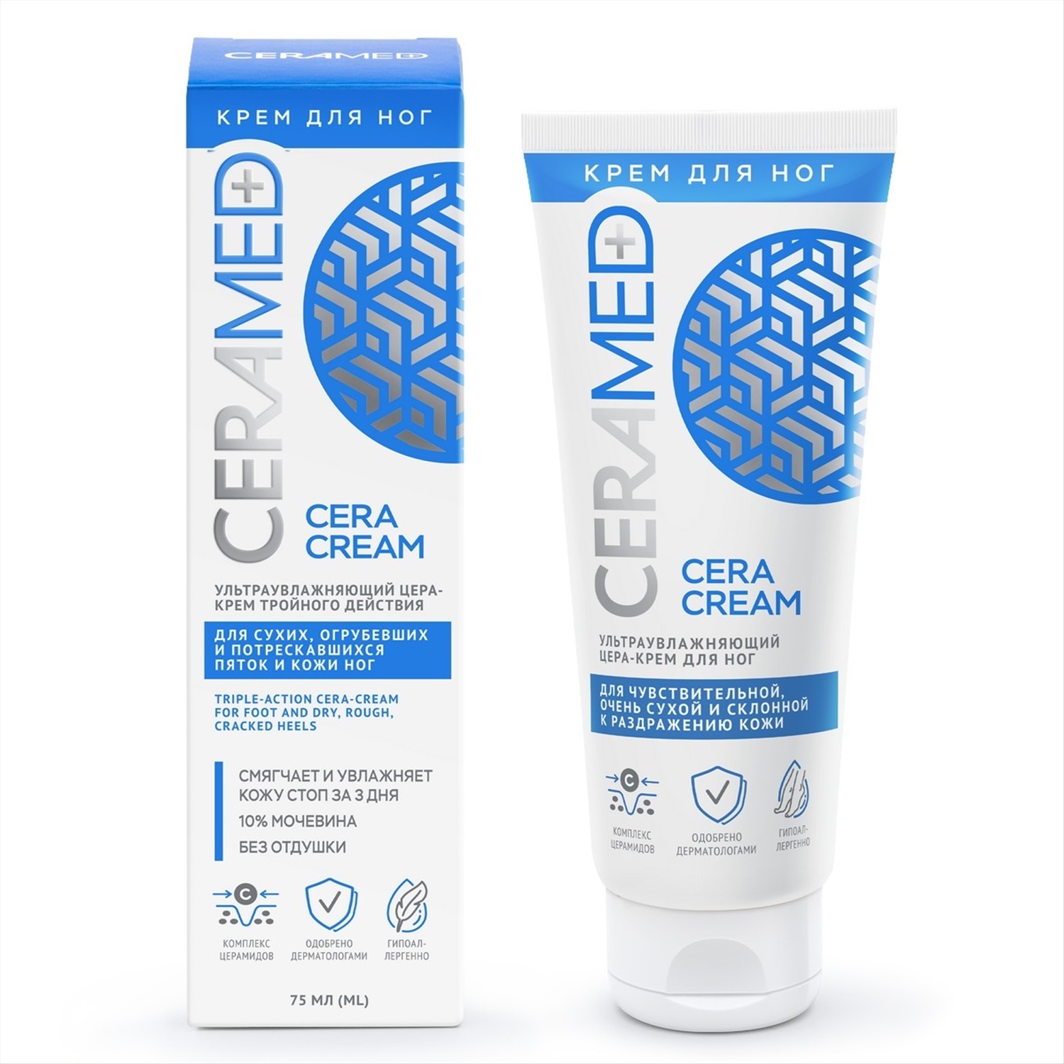 Цера-крем тройного действия для ног ультраувлажняющий, 75 мл. Кожа ног чаще подвержена сухости, поскольку там меньше всего сальных желез. Постоянные нагрузки на ноги влияют на избыточное ороговение кожи стоп. Базовая формула крема способствует глубокому увлажнению и смягчению сухой и потрескавшейся кожи ног. Биосинергия компонентов позволяет Цера-Крему глубокого увлажнять и интенсивно питать кожу ног, оставляя ее мягкой и увлажненной в течение длительного времени. Идеально подходит для чувствительной, очень сухой и склонной к раздражению кожи ног. Базовый принцип создания продуктов Ceramed заключается в Биосинергии компонентов с доказанной эффективностью, направленной на решение конкретных задач.