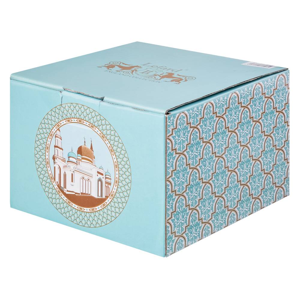 Материал: Фарфор Микроволновая печь: Нет Посудомоечная машина: Нет Серия: Сура Товарная группа: 86 группа Бренд: Lefard Фасовка: 1/36 Страна: КИТАЙ Маркировка: Нет Штрих-код: 6907108621974 Вес: 0,375 кг Количество штук в коробке: 1 - 36 шт, Длина коробки: 14 см Ширина коробки: 14 см Высота коробки: 10 см ТМ LEFARD представляет эксклюзивную коллекцию посуды «Суры из Корана». Кувшины, чайники, сахарницы, кружки, чайные пары, декоративные тарелки и другие предметы выполнены из высококачественного тонкостенного фарфора. Восточный орнамент, небольшие отрывки Сур из Корана на классическом арабском и русском языках с отделкой золотом украшают изделия. Это прекрасный мусульманский подарок, всегда нужный и теплый. Относитесь к нему бережно и с почтением. Посуду коллекции можно использовать как в повседневной жизни, так и на торжественном приеме. Не рекомендуется мыть в посудомоечной машине и использовать в микроволновой печи.