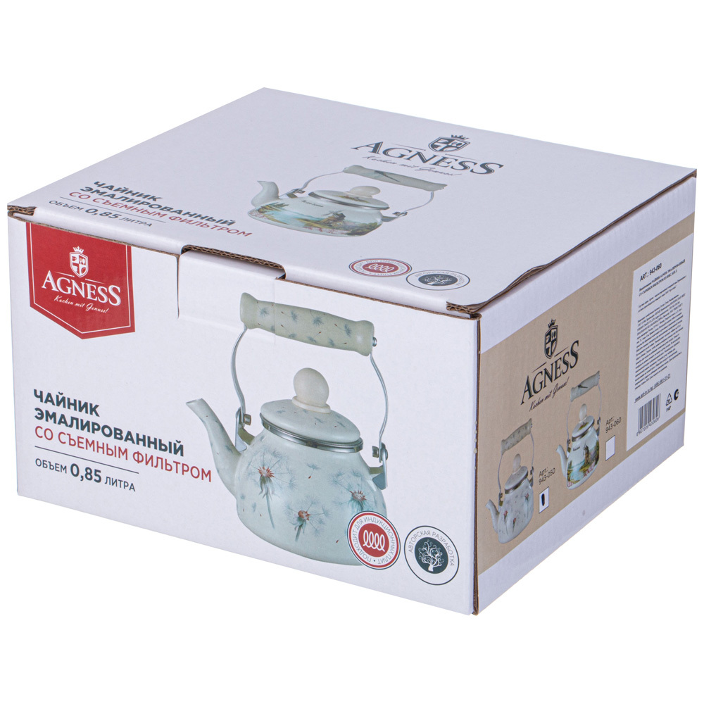 Бренд: Agness; Коллекция/Серия: Agness Dandelion; Категория: Посуда, Посуда для чая и кофе, Чайники для кипячения; Серия: Dandelion; Материал: Сталь Эмалированная; Фасовка: 1/12; Объем, л: 0.85; Вес: 0.725 кг; Количество штук в коробке: 1 - 12 шт., 1 - 12 шт; Длина коробки: 17 см; Ширина коробки: 19 см; Высота коробки: 11 см; Страна производства: Китай; Товарная группа: 943 группа