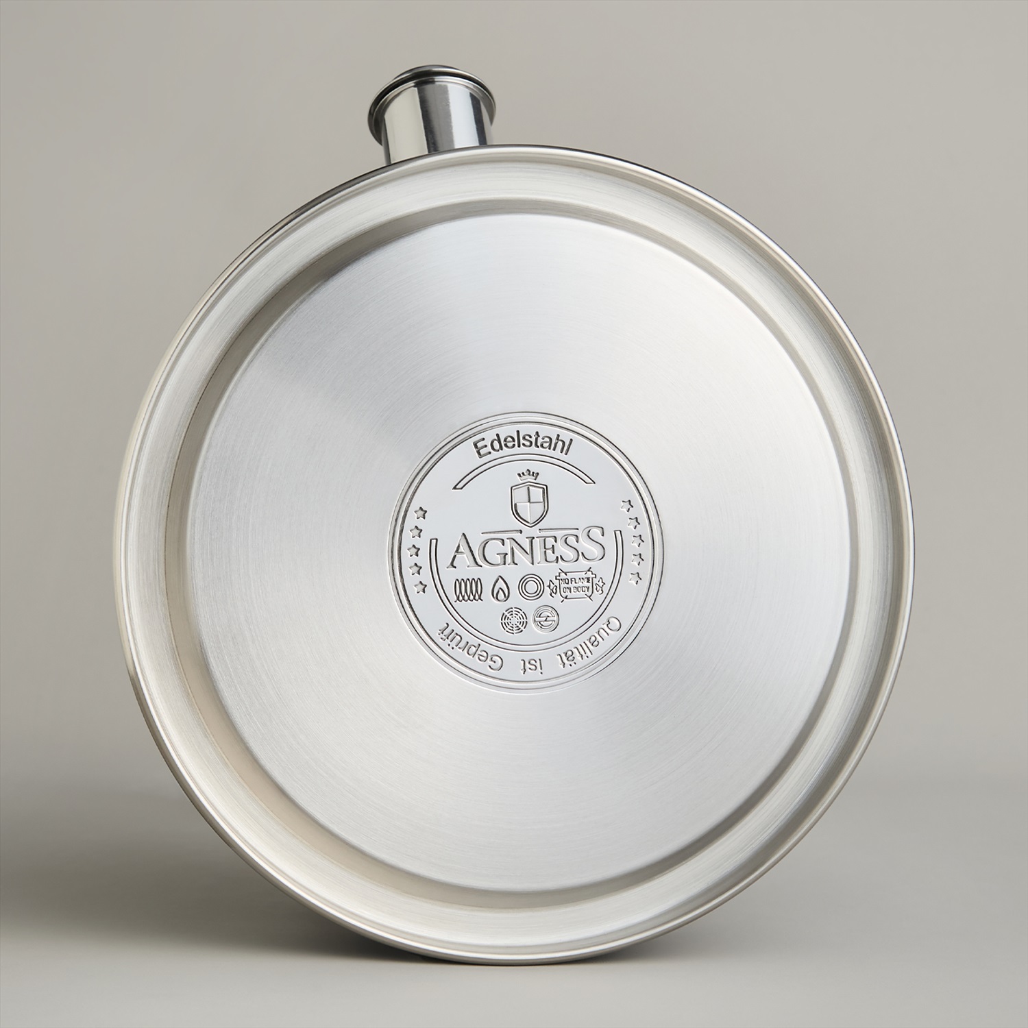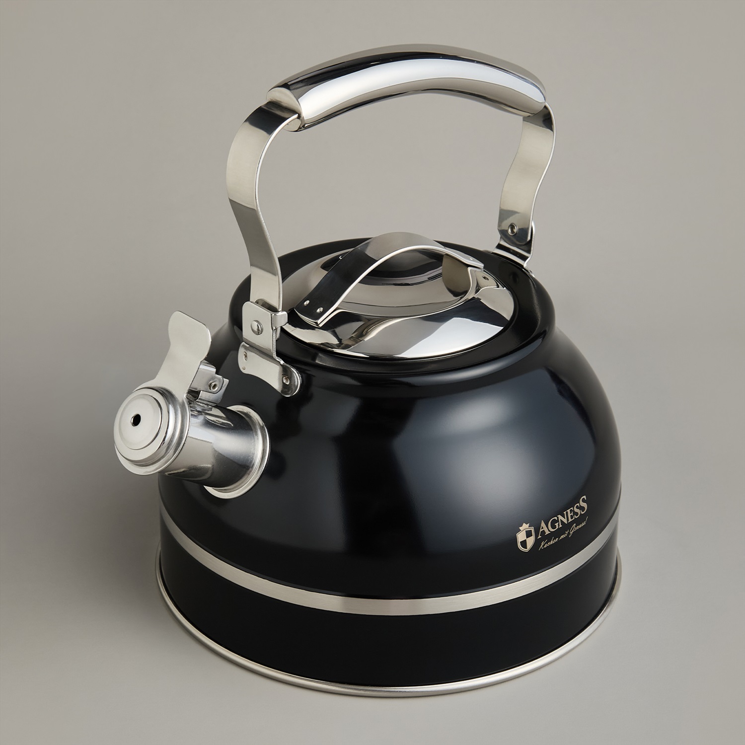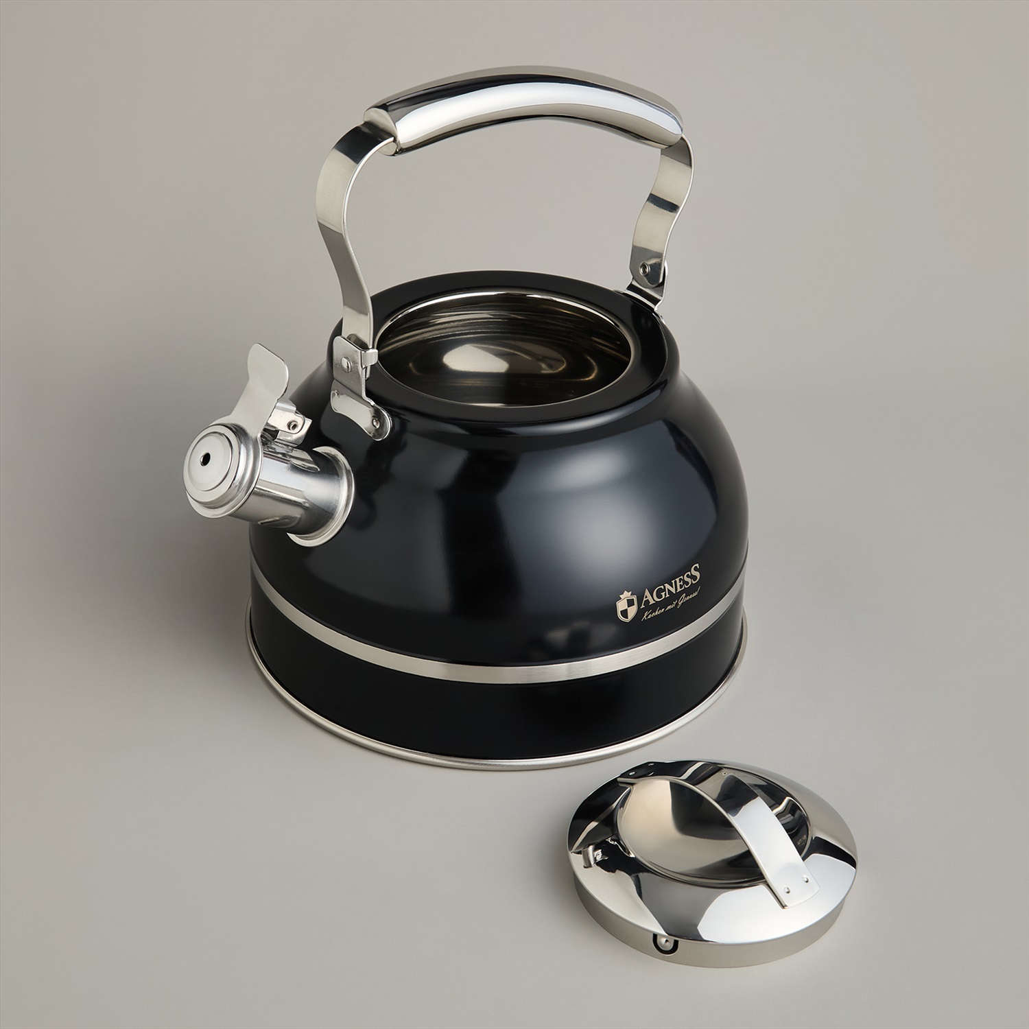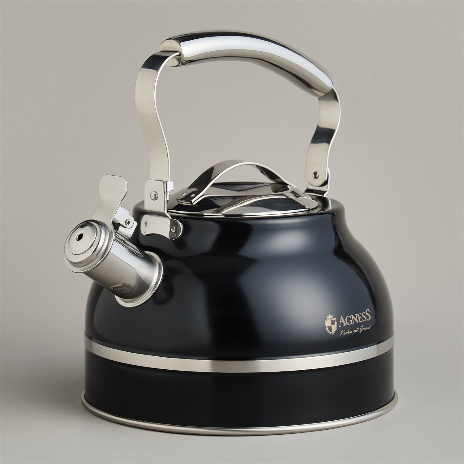 • Капсульное термоаккумулирующее дно с прослойкой из алюминия позволяет воде в чайнике дольше оставаться горячей. Термоаккумулирующее дно ИМЕЕТ МНОГОСЛОЙНУЮ СТРУКТУРУ, в состав которой входит толстая пластина из алюминия, запрессованная под высоким давлением с металлическим диском, еще одной пластиной из алюминия, и эта конструкция закрывается капсулой из нержавеющей стали. Благодаря высокой теплопроводности алюминия термоаккумулирующее дно имеет свойства накапливать (аккумулировать) тепло и быстро и равномерно распределять его по всей поверхности посуды. В чайниках с термоаккумулирующим дном вода ЗАКИПАЕТ БЫСТРЕЕ, и дольше остается горячей. • Не содержит BPA и пластиковых элементов • Удобная складывающаяся ручка • Легко наливать воду. Используя клапан на носике чайника, вы легко сможете налить воду. Просто нажмите на клапан, чтобы открыть носик чайника. • Встроенный свисток подскажет, что вода в чайнике закипела и его пора снимать с плиты. • Стильный дизайн чайника с логотипом бренда AGNESS украсит любую кухню • Подходит для всех типов плит, включая ИНДУКЦИОННЫЕ Металлический чайник AGNESS - незаменимый атрибут в Вашем доме, а также прекрасный подарок для Ваших близких. Такая посуда будет служить в АКТИВНОМ использовании ДОЛГИЕ ГОДЫ. Толщина корпуса 0,5мм, толщина дна 3,0мм. Комментарии к товару