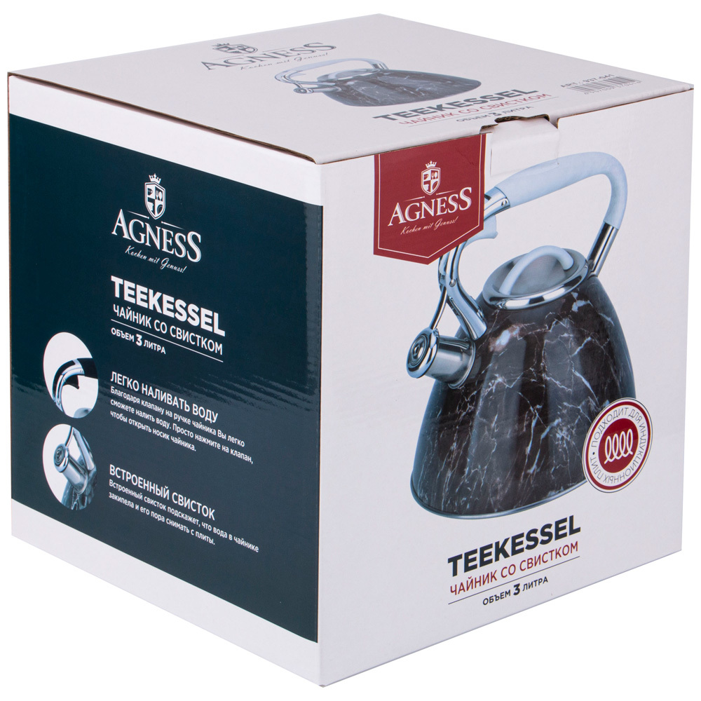 • Благодаря внешнее жаропрочному покрытию и стильному дизайну чайник AGNESS украсит любую кухню
