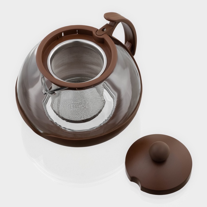 Чайник заварочный объемом 750 мл представлен прочной стеклянной колбой и дополнен фильтром для заварки из нержавеющей стали.