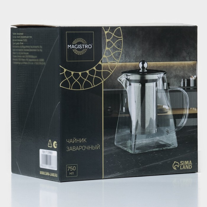 Габариты: 10 x 15,5 x 14,5 Страна: Китай В боксе: 60 шт Состав: Нержавеющая сталь, стекло Материалы: нержавеющая сталь, стекло Фасовка: по 1 шт Индивидуальная упаковка: Цветная картонная коробка Габариты товара: 15 см × 9,5 см × 15,5 см Сертификат: СТР Набор: Нет Цвет: Прозрачный Объём, мл: 750 Вид упаковки: Коробка картонная Рисунок: Нет Материал крышки: Металл Для детей до 3 лет: Нет Можно мыть в посудомоечной машине: Нет Текстура: Гладкая Особенности: С ситечком Особенности: Без особенностей Матовая поверхность: Нет Материал сита: Металл Материал чайника: Стекло Чайник заварочный Magistro «Дарси» подойдёт как для чаепития в кругу семьи, так и делового ланча с коллегами. Современная форма не только придаёт изделию эффектный внешний вид, но и определяет большую вместительность и устойчивость ёмкости. Поверхность не окисляется, не вступает в реакцию с пищевыми жидкостями. Удобный сливной носик делает использование посуды простым и комфортным. Особенности: