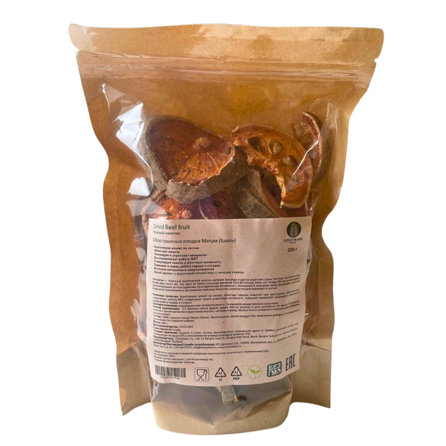 Также помогает эффективно справиться с последствиями курения, благодаря чему рекомендуется для применения тем, кто курит. Состав: Высушенные нарезанные дольками плоды тропического фрукта – баэля 100%. Способ применения: 2-3 ломтика сухого фрукта залить 300 мл. кипятка и дать настояться 30 минут. Можно пить в холодном и горячем виде, добавлять мед или лимон. Противопоказания/Меры предосторожности: индивидуальная непереносимость компонентов чая. Объем: 200 грамм Изготовитель: Coco Blues, Таиланд.