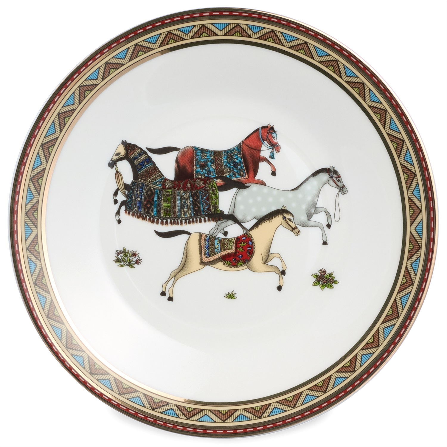 ТМ Lefard коллекция Passage мужественная и стильная. Движения лошадей эластичные, элегантные с активным импульсом. Каждая диагональная пара ног поднимается и ставится в очень точном ритме и с подвисанием. Шея лошади приподнята и округлена, затылок находится в высшей точке, голова опущена почти вертикально. Этот ритм завораживает. Посуда для сервировки стола из тонкостенного упрочненного фарфора неповторима. Прямые формы. Декор с богатым орнаментом и золотой окантовкой. Посуда прошла сертификацию. Безопасна для контакта с пищевыми продуктами. Отличный подарок. Не использовать в микроволновой печи, не рекомендуется мыть в посудомоечной машине.