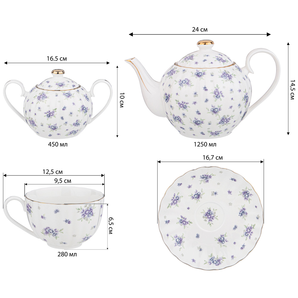 Материал: Фарфор Микроволновая печь: Нет Посудомоечная машина: Нет Серия: SONNET IN BLUE Товарная группа: 760 группа Бренд: Lefard Фасовка: 1/11/4 Страна: КИТАЙ Маркировка: Нет Штрих-код: 6907007607635 Вес: 4,500 кг Количество штук в коробке: 1 шт, Длина коробки: 37 см Ширина коробки: 31 см Высота коробки: 32 см ТМ LEFARD коллекция "Sonnet in Blue" выполнена из тонкостенного упрочненного фарфора. Стильная форма, вместительный объем, модная синяя цветовая гамма, нежные цветочные букетики, отделка золотом - все это делает коллекцию неотразимой и очень привлекательной. Форма и цвет посуды способны оказать магическое действие на всех, кто находится за столом. В произведениях искусства синий — это цвет ночи и тени, а значит, идеальный цвет для тайны. Это прекрасный подарок, символизирует спокойствие и безмятежность. Нельзя ставить в микроволновую печь, не рекомендуется мыть в посудомоечной машине. Комплектность: чайник 1200 мл - 1 шт., сахарница 400 мл - 1 шт., чашка 280 мл - 6 шт., блюдце 17 см - 6 шт.
