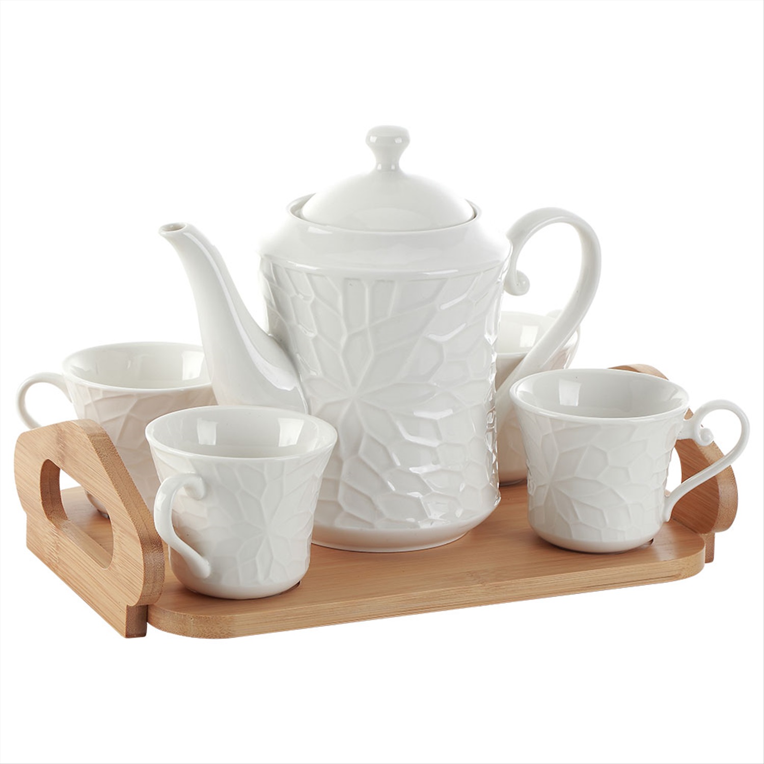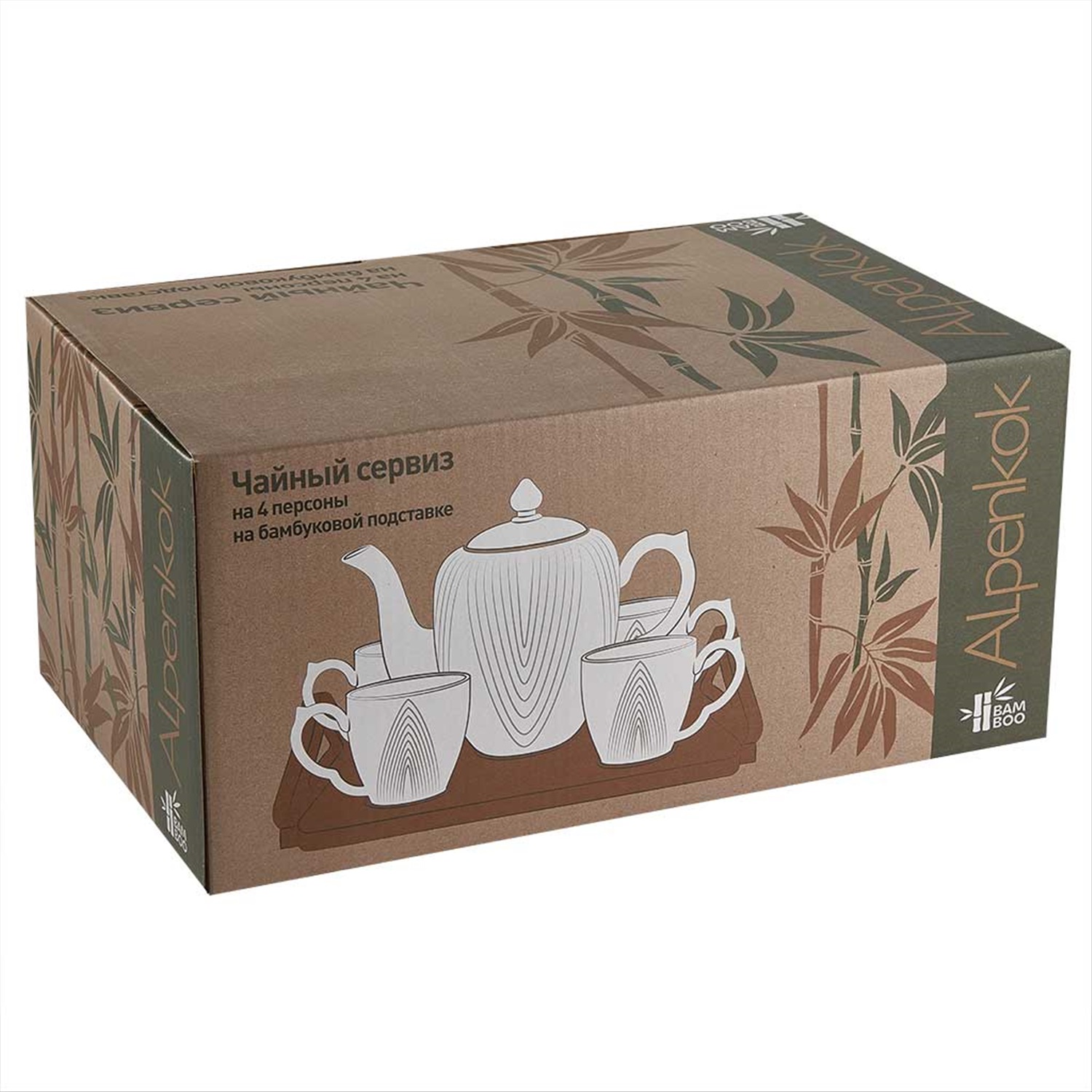 * Чайный фарфоровый сервиз на 4 персоны на бамбуковой подставке