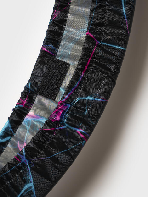 Храните чехол в сухом месте. При загрязнении его можно аккуратно протереть влажной тканью. Используйте один чехол для транспортировки нескольких обручей одного размера — это удобно и экономит место.