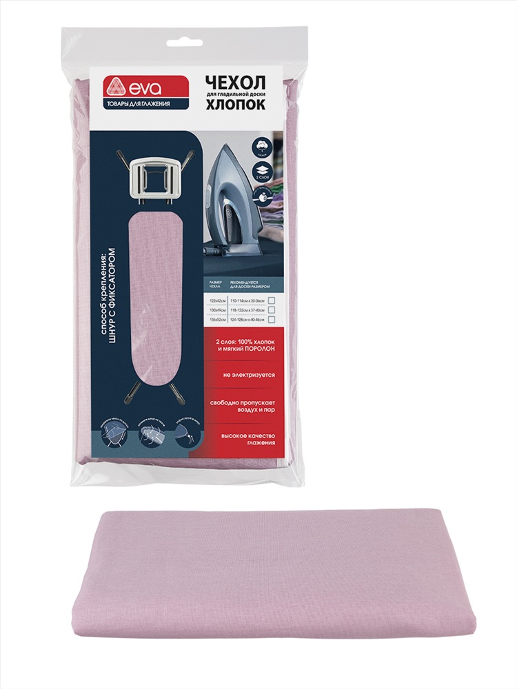 Чехол - оптимальное решение для обновления внешнего вида, улучшения качественных характеристик и продления срока службы гладильной доски. Верхний слой сделан из 100% хлопка, а нижний - из мягкого поролона толщиной 2 мм. Хлопковый чехол препятствует электризации вещей и не допускает их соскальзывания с поверхности доски. Мягкий поролоновый слой делает поверхность доски ровной и гладкой, а также повышает паропроницаемость. Изделие фиксируется шнуром с фиксатором, который надежно закрепит его по габаритам и контуру доски, исключив сдвигание во время использования. При выборе чехла учитывайте, что его размер должен быть больше размера покрытия доски минимум на 5 см. Рекомендуется менять чехол не реже 1 раза в три года. Перед использованием рекомендуется прополоскать в тёплой воде. С осторожностью утюжить светлые вещи.