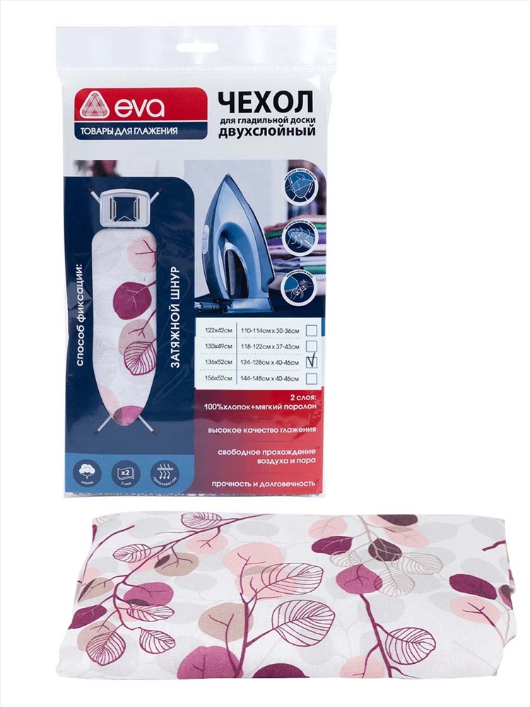 Полное наименование: Чехол для гладильной доски, хлопок, 136х52см, "Розовый эвкалипт" Бренд: Eva Честный знак: Нет Количество в упаковке: С.К.10 Вес коробки: 1.81 Вес: 0.152 Объем: 0.0356 м3 ОписаниеКлассический чехол для гладильной доски "Розовый эвкалипт" сделан в России из бязевого хлопка.В качестве подкладки используется поролон толщиной 2 мм. Размер поролона соответствует размеру гладильной доски для оптимального распределения на внешней поверхности гладильной доски, без припусков на нижнюю часть доски. При необходимости, поролон можно уменьшить под размер Вашей гладильной доски, Чехол легко фиксируется на доске с помощью затяжного шнура. Такой чехол поможет за считанные минуты обновить гладильную доску: придать ей аккуратный вид и выровнять поверхность доски. Размер чехла: 136х52см. Для определения подходящего размера чехла для гладильной доски необходимо к параметрам доски добавить 6-12см. Это оптимальный припуск, который обеспечит полное покрытие доски и плотную посадку чехла без избытка ткани. Комментарии к товару